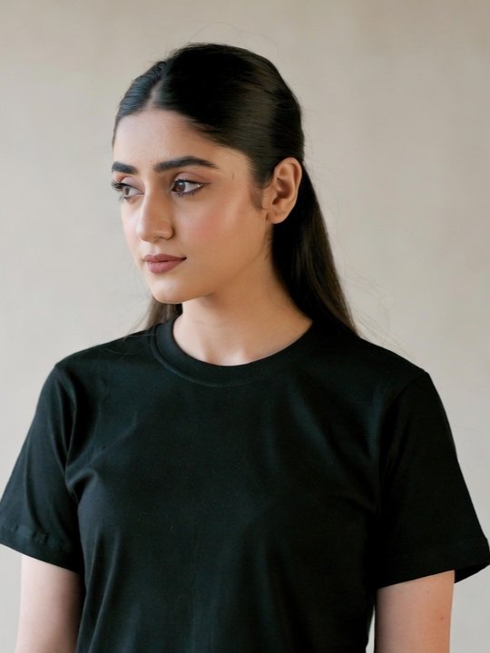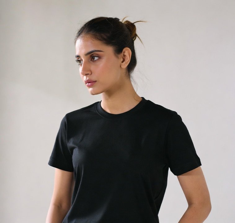 Be the first to review “Black Polyester Cotton Half Sleeves T-Shirt for Women”